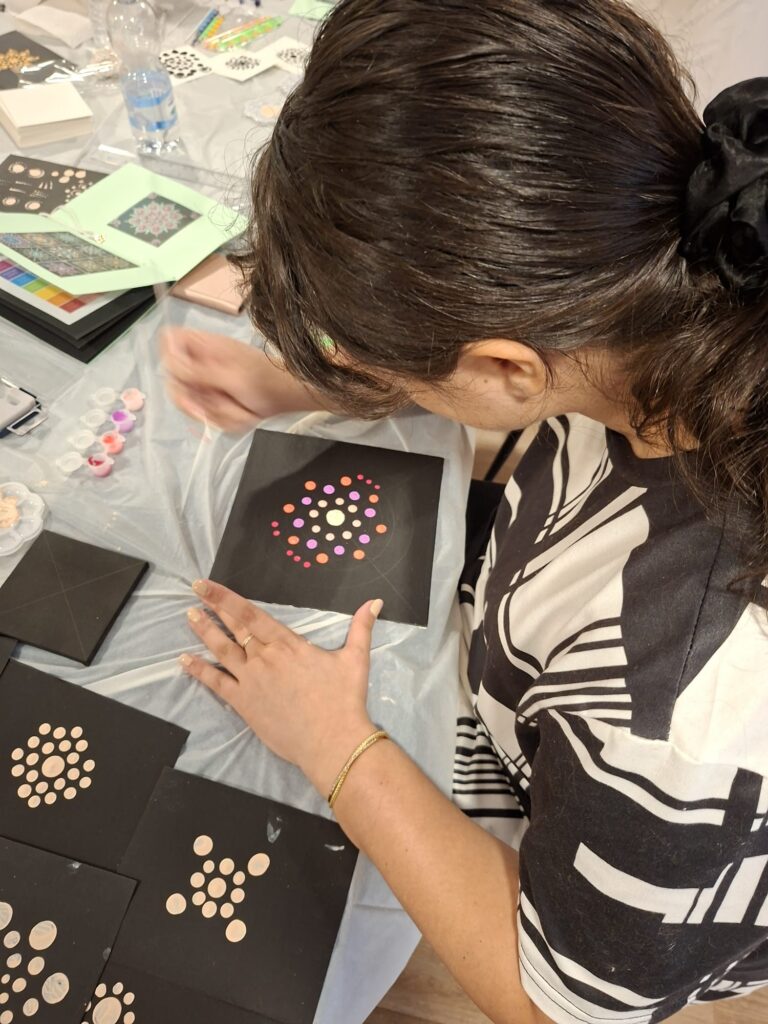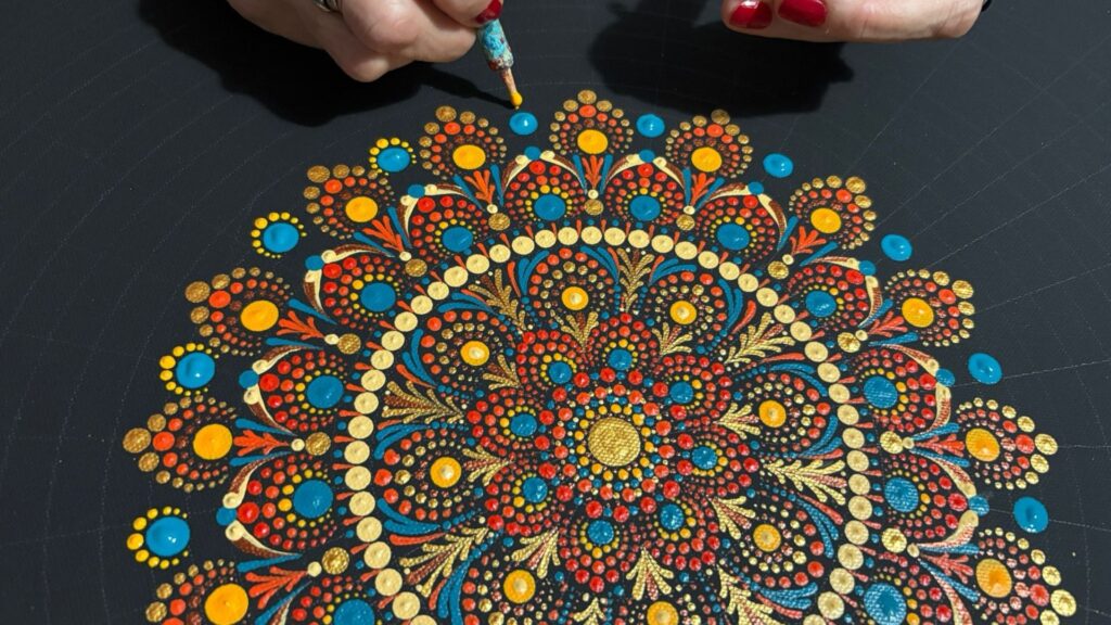 Our Mandala Dot Art Workshops combine guided relaxation with mindful creation. You will learn the foundations of dot art technique — symmetry, rhythm, color harmony — but within a calm and supportive environment.